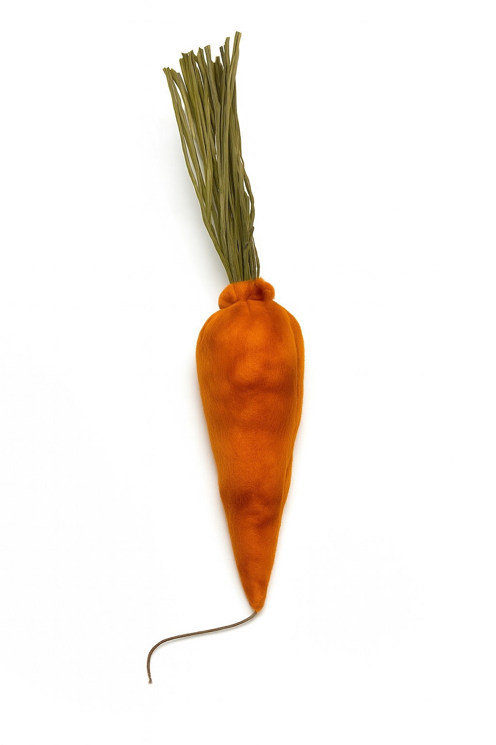 Zabawka – kopacz dla kota w kształcie marchewki, wypełnionej dobrej jakości kocimiętką z Kanady. Wykonana ręcznie, każda zabawka jest unikalna.