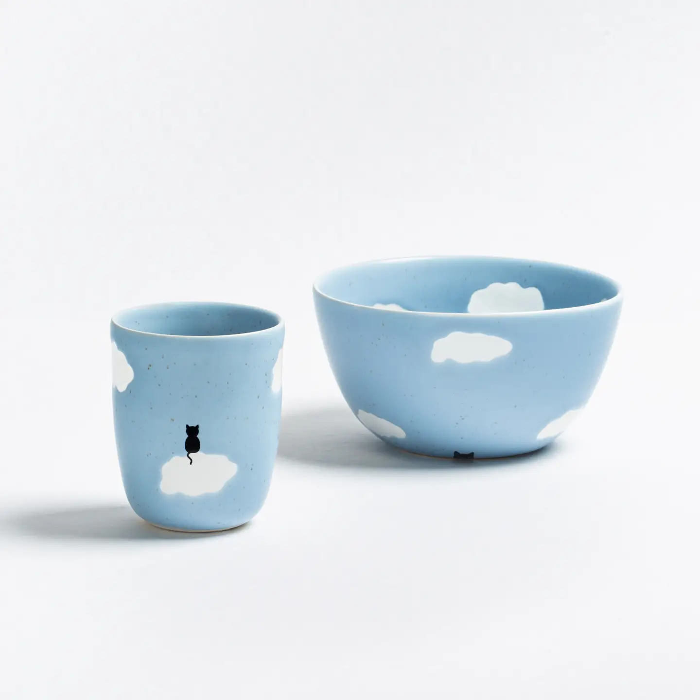 Delikatne, matowe pastele w połączeniu z czarnym napisem oraz wybranymi akcentami w kolorze różowym lub niebieskim tworzą radosną, nowoczesną kolekcję idealną dla każdej kociej opiekunki. To doskonały wybór na poranną kawę, herbatę lub codzienny rytuał z ulubionym pupilem.