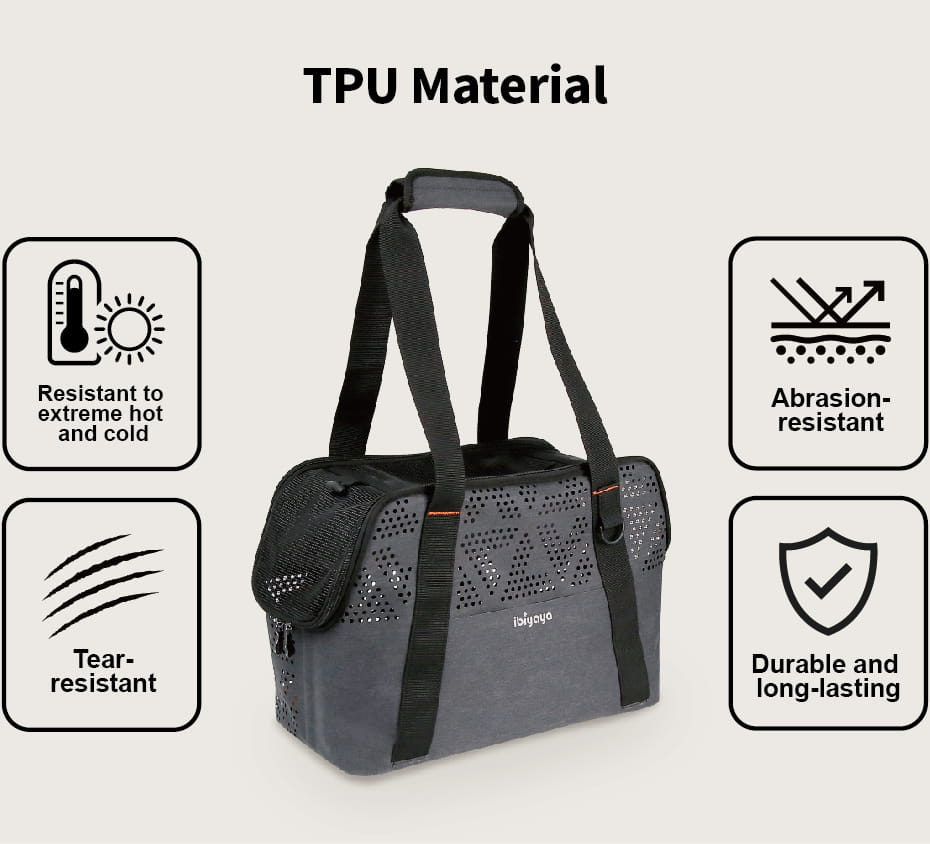 Torba Breezy to lekka, wygodna torba dla psa i kota . Przy jej producji Ibiyaya wykorzystała innowacyjną technikę spawania falami radiowymi (ta technika łączy tkaniny bez szwów). Torba wyróżnia się eleganckim odpornym na sierść designem i niesamowicie lekką konstrukcją, (waży zaledwie 540g). Breezy to wytrzymały materiał TPU, który radzi sobie w trudnych warunkach atmosferycznych, nie deformując się i oferując przestronne wnętrze z szerokim wejściem dla psa lub kota.