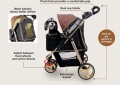 Przyjemna przejażdżka dla Twojego zwierzaka: Twój zwierzak będzie mógł wygodnie podróżować w zarówno w terenie jak i w mieście. Jest łatwy w manewrowaniu, ponieważ przednie koła mogą również obracać się o 360 stopni.