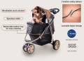 Innowacyjny projekt: zaawansowany technologicznie wózek o innowacyjnej konstrukcji jest łatwy w prowadzeniu i manewrowaniu. Ponieważ rama składa się z anodowanego aluminium, jest wytrzymała i lekka. Posiada tylne hamulce uruchamiane jednym dotknięciem dla bezpieczeństwa oraz smyczkę zabezpieczającą, która przytrzymuje Twojego zwierzaka.