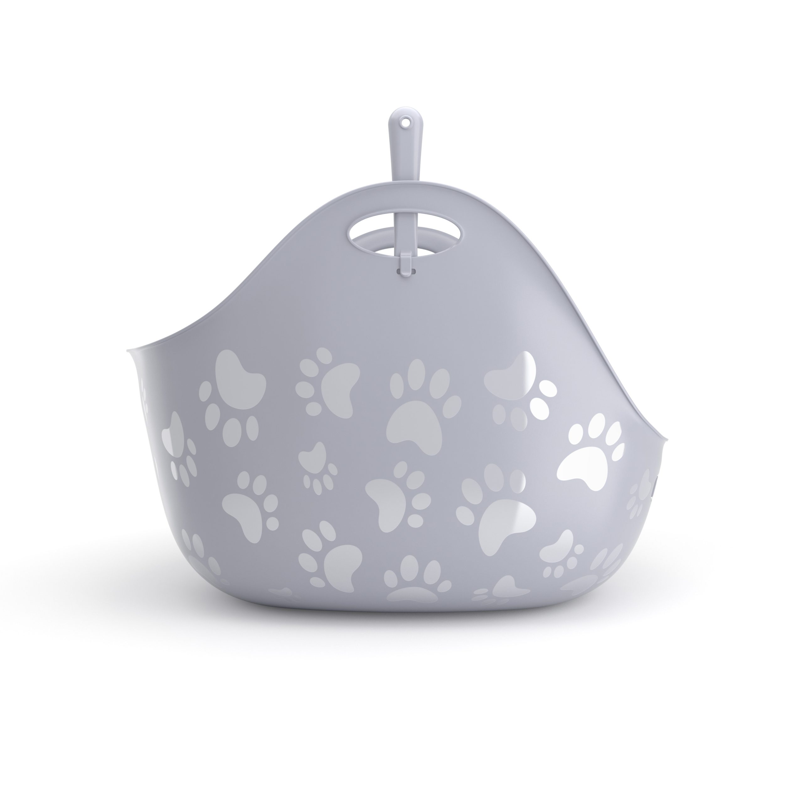 - Zintegrowane i praktyczne uchwyty – ułatwiają przenoszenie kuwety oraz wymianę brudnego żwirku na czysty.