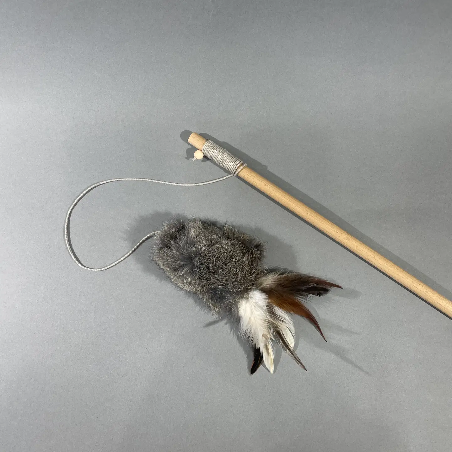 Kopacz dla kota wykonany ręcznie z naturalnego futra królika i piór. Produkt najwyższej jakości, idealny do zabawy. Bez plastikowych elementów.