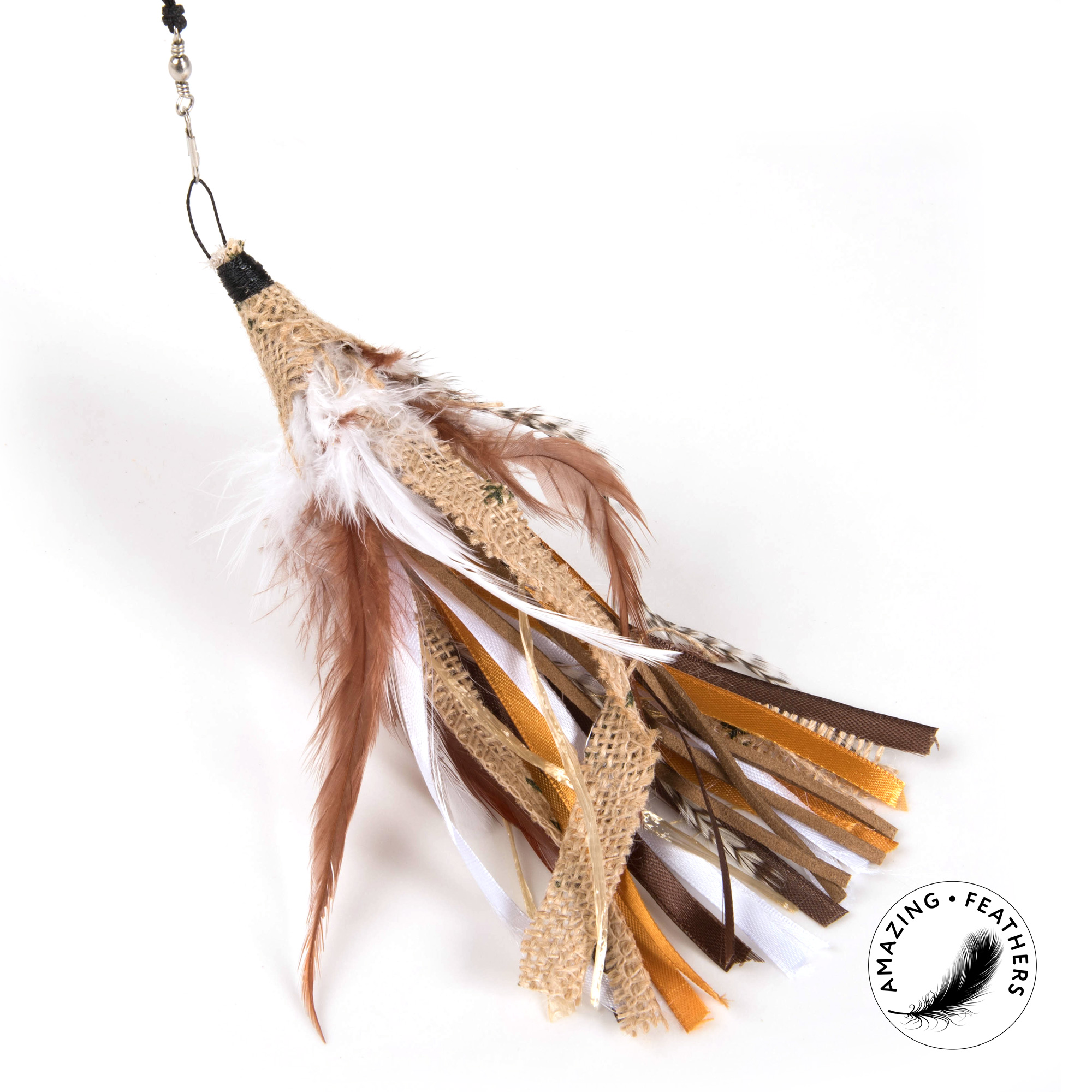 Nasza puszysta zabawka dla kota to najwyższej jakości produkt wykonany z prawdziwego futra króliczego, połączony z delikatnymi piórami i dzwoneczkiem.