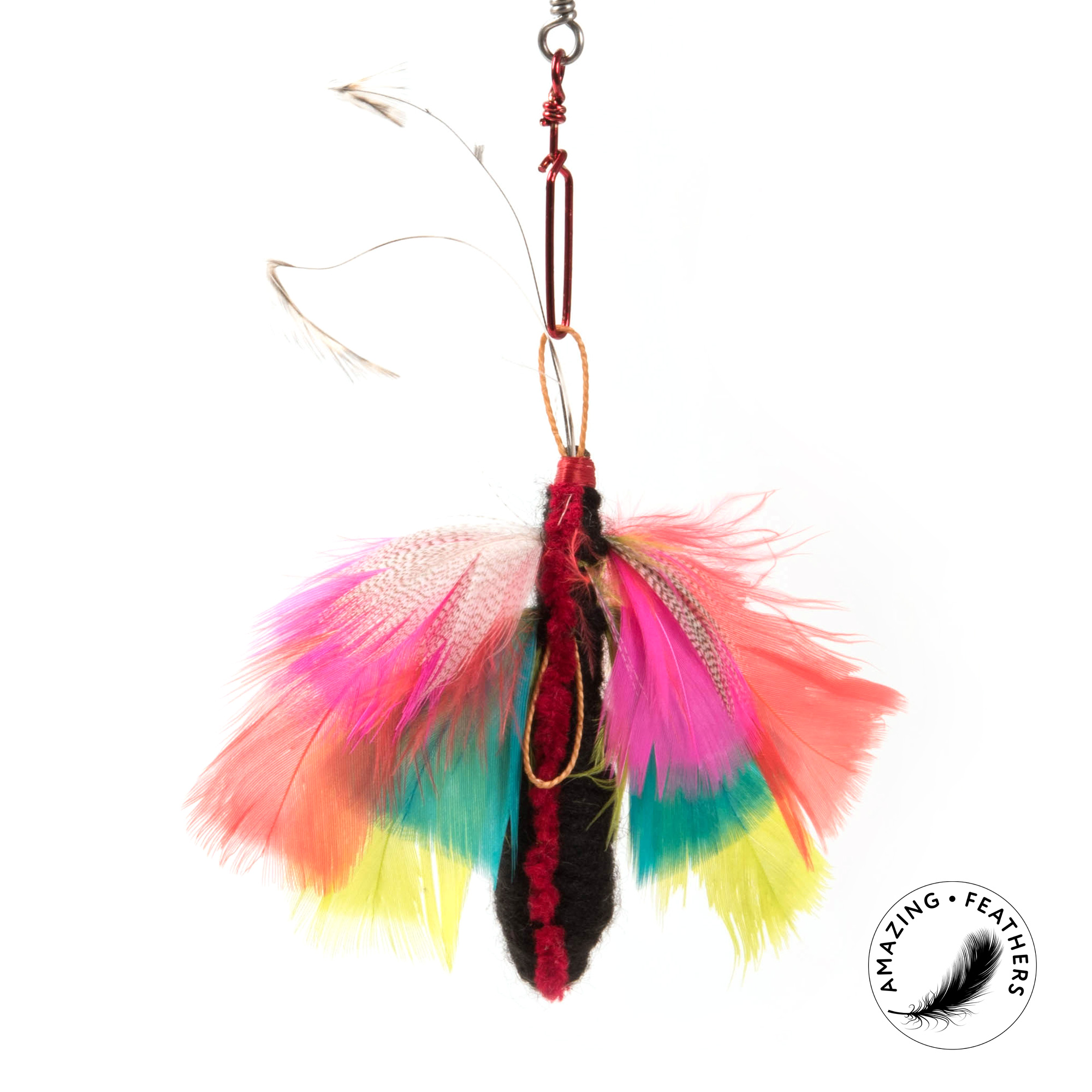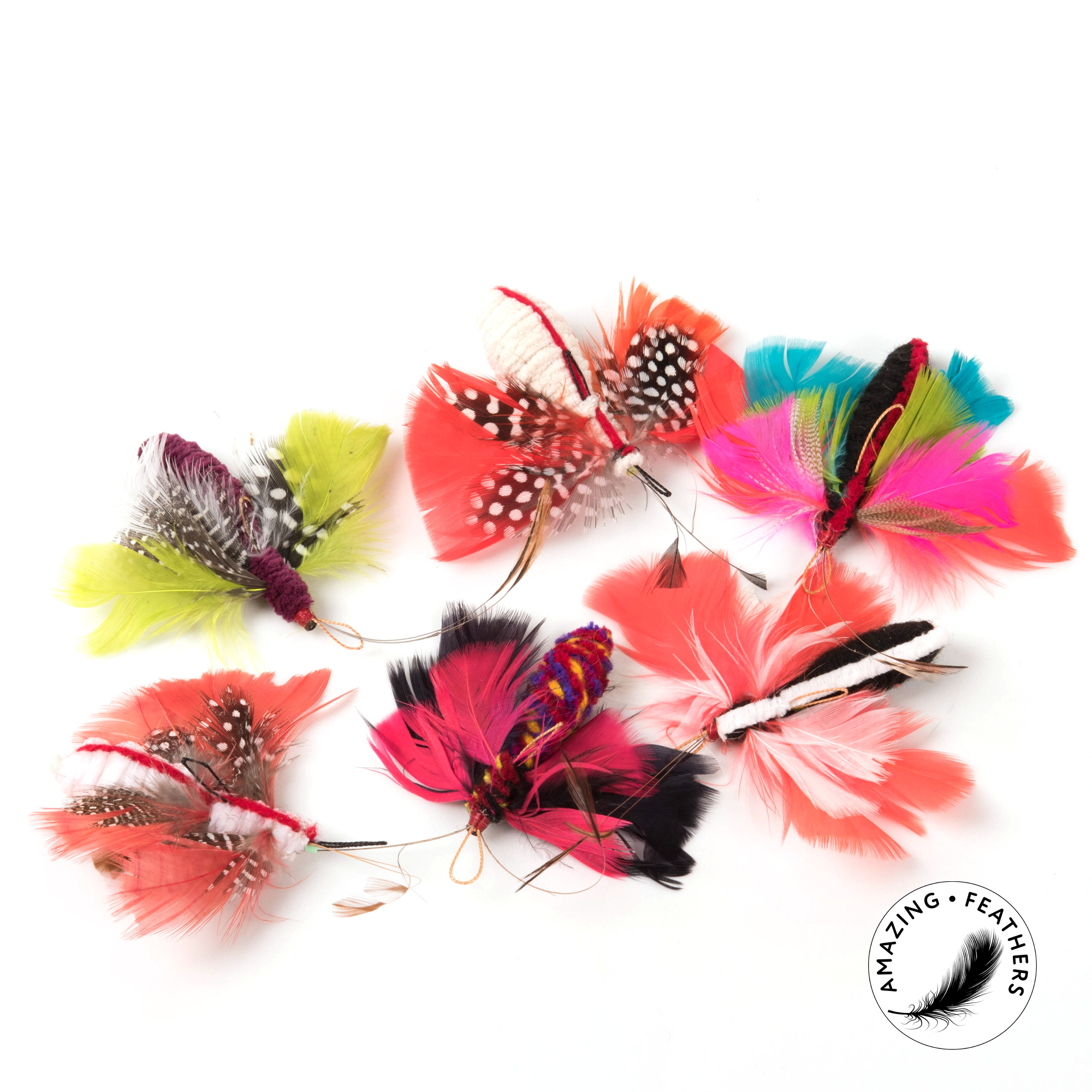 Kolorowa zawieszka do wędki dla kota, w kształcie motyla. Wykonana ręcznie z kolorowych piór i miękkiego materiału. Każda zawieszka jest unikalna.