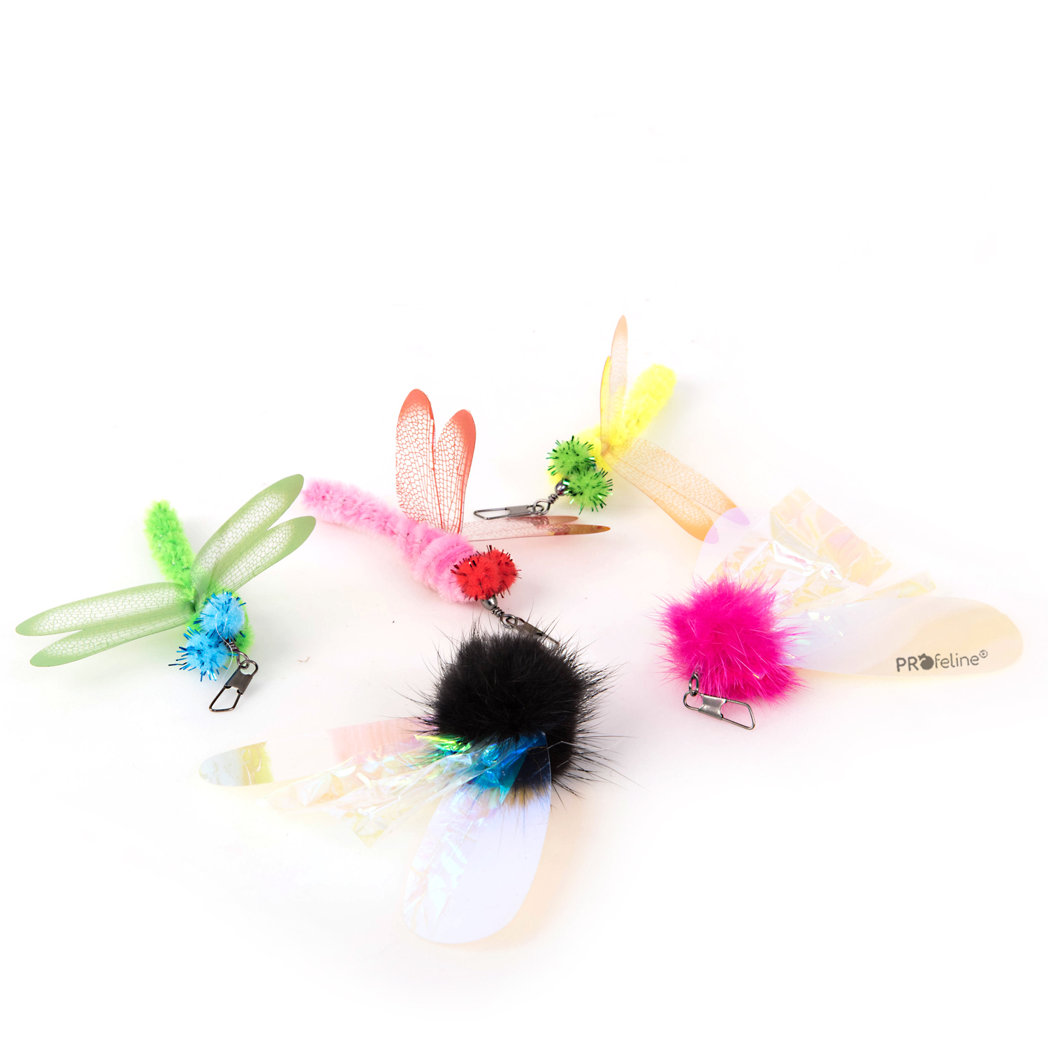 Duża zawieszka w kształcie ważki/motyla  z 4 dużymi piórami osadzonymi w formie skrzydeł na wąskim ciele, która wygląda jak prawdziwy owad.