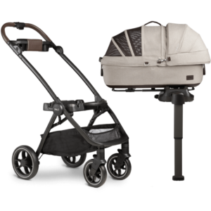 Maeve można bezpiecznie i łatwo przymocować do specjalnej bazy z wpięciem do Isofix w samochodzie lub do ramy wózka.