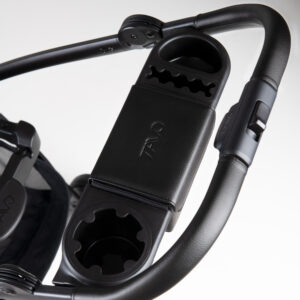 Wbudowany organizer na rączce do pchania obejmuje uchwyt na kubek, kieszeń na telefon i przegródkę z bezpiecznym zamknięciem magnetycznym, aby wszystko, od kluczy po smakołyki, było w zasięgu ręki podczas podróży.