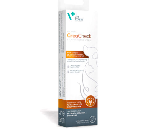 Vet Expert CreaCheck to wygodny półilościowy test paskowy służący do szybkiego pomiaru stężenia kreatyniny w ślinie psów i kotów. Test pozwala na wstępną ocenę funkcji nerek w domowych warunkach, bez stresu dla zwierzęcia.
