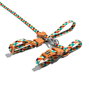 Kolorowe szelki dla kota w komplecie ze smyczą. Wykonane z trwałego i odpornego na uszkodzenia materiału. Bezpieczne zapięcie.